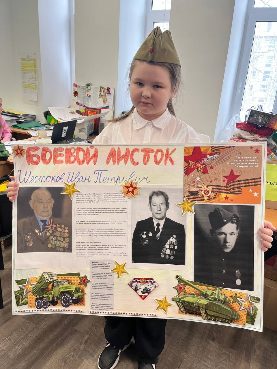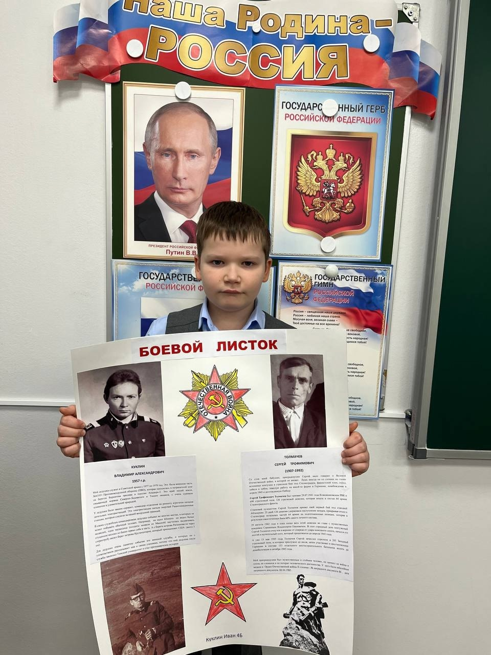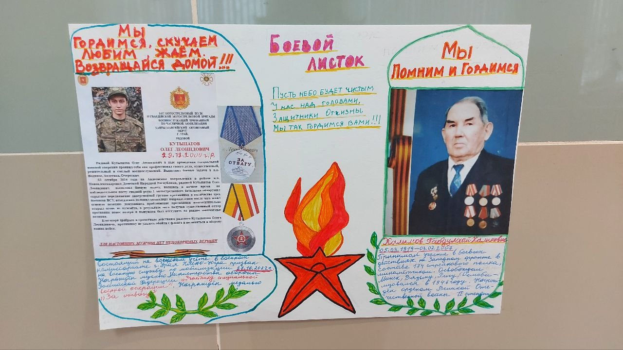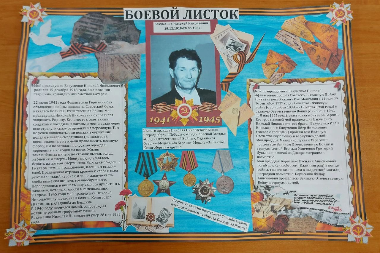 4б класс подготовили "Боевые листки" о героях своей семьи.
