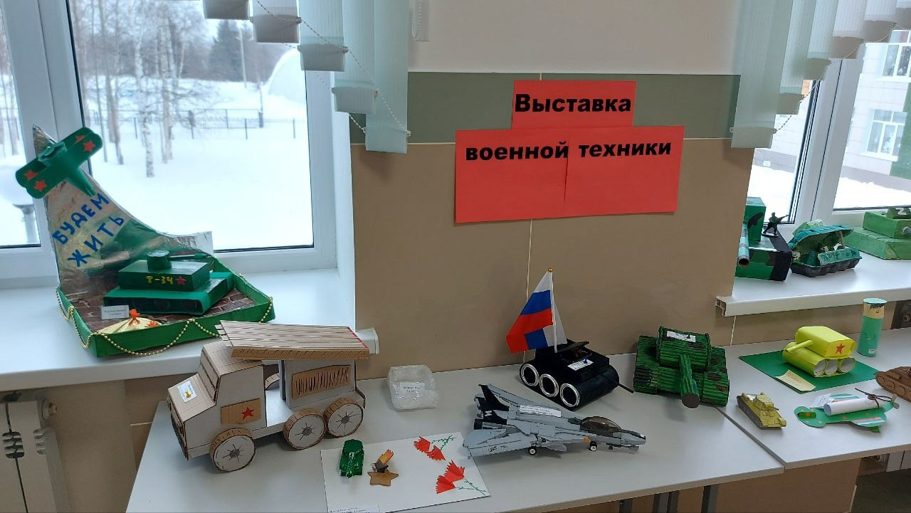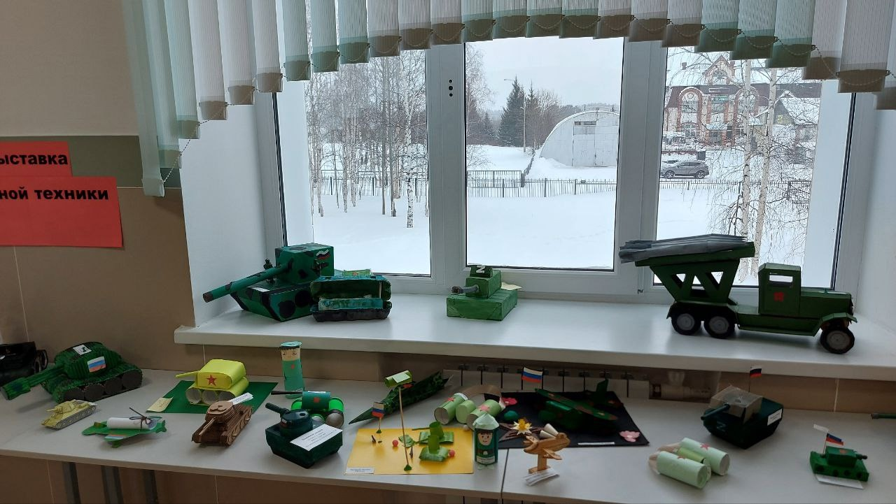 Выставка поделок военной техники ко Дню Защитника Отечества.